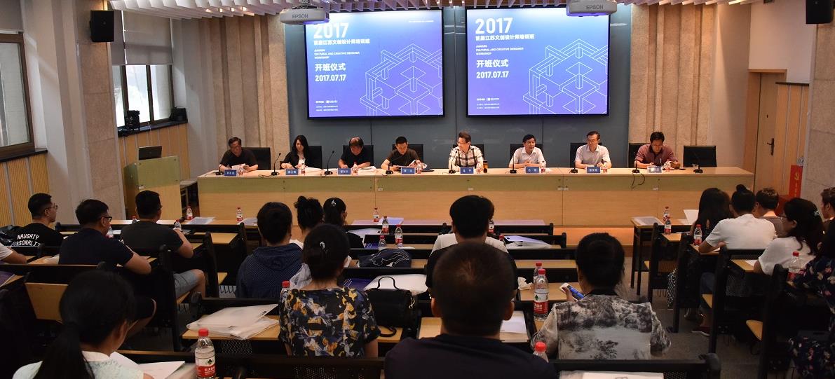 由江蘇藝術(shù)基金立項(xiàng)資助,愛(ài)濤文化集團(tuán)主辦、南京藝術(shù)學(xué)院設(shè)計(jì)學(xué)院承擔(dān)教學(xué)的2017江蘇文創(chuàng)設(shè)計(jì)師培訓(xùn)班,于7月17日在南京藝術(shù)學(xué)院設(shè)計(jì)學(xué)院舉辦了開(kāi)班典禮。江蘇省文化廳巡視員馬寧、江蘇省文化廳辦公室主任、江蘇藝術(shù)基金管理中心主任李川、南京藝術(shù)學(xué)院副院長(zhǎng)呂斌、愛(ài)濤文化集團(tuán)董事長(zhǎng)張發(fā)松、常務(wù)副總經(jīng)理陳云梅、南京藝術(shù)學(xué)院設(shè)計(jì)學(xué)院院長(zhǎng)鄔烈炎、江蘇省文化廳科產(chǎn)處副處長(zhǎng)耿衛(wèi)等領(lǐng)導(dǎo)出席開(kāi)班儀式,南藝設(shè)計(jì)學(xué)院副院長(zhǎng)李永清主持開(kāi)班儀式。
